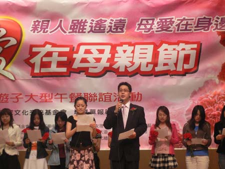 中新网温哥华5月13日电 身居异国他乡,你最想念的亲人是谁?出门在外,最牵挂你的人又是谁?今年的母亲节,远在加拿大温哥华地区的中国学子们不再孤独。今天,百多位母亲和近500名留学生相聚大温中华文化中心,参加“爱在母亲节——关爱游子大型联谊活动”。