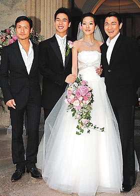 台湾媒体报道说,柯受良的女儿柯立珍昨天和香港慈善机构“东华三院”主席周振基的儿子周博轩结婚,婚礼在香港圣亩无原罪主教座堂举行,两人应媒体要求多次热吻,新郎笑言:“亲几次都行。”甜蜜尽在不言中。
