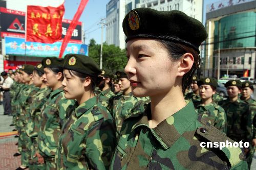 2006年5月16日,山东省首家民营企业女子民兵连正式成立。该民兵连由120人组成,平均年龄23岁,实行半军事化管理,除参加正常军政训练外,还将开展社区防汛、维护社会治安等各项活动。作者:龚辉