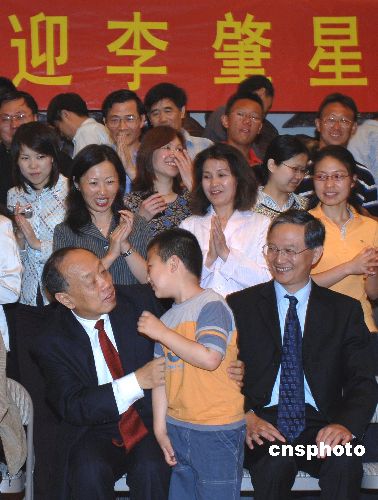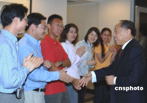 五月十六日下午,外交部长李肇星飞往南美州途经美国洛杉矶时下飞机即往中国驻洛杉矶总领事馆,看望驻当地外交使团的年轻工作人员,并慰问家属。作者:贾国荣