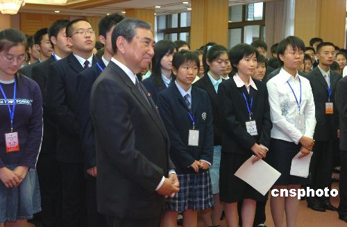 日本众议院议长河野洋平,五月十七日下午在议长公邸会见应邀访日的中国高中生代表团一行。图为河野议长在会见中听取学生代表的发言。作者:王健