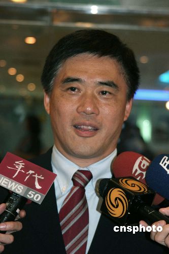 5月18日,“2006年第一届大地知音全球华人音乐创作大赛”在台北启动。国民党台北市长参选人郝龙斌出席并接受记者采访。作者:董会峰