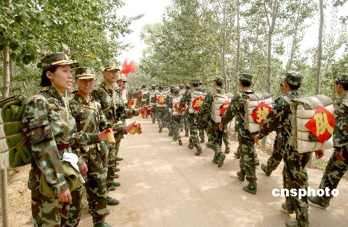 5月18日,武警石家庄指挥学校通信队的55名学员徒步行军50余公里接受野外通信科目的考核。当日,这些男女混编的学员们怀着与其他区队学员不同的心情参加考试,面对摄像机镜头,他们纷纷表示:要以最好的成绩回报学校的培养,让自己的身影永远留在学校的史册。作者:余洪恩