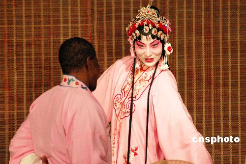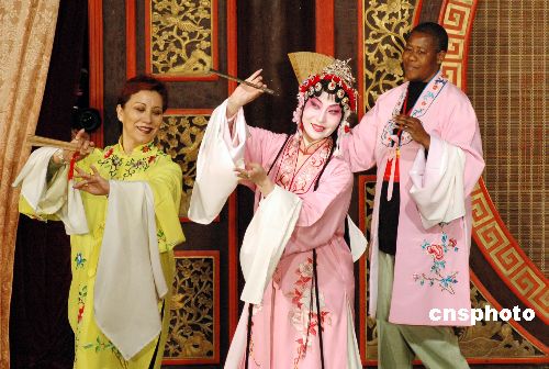 五月十八日晚,周庄古戏台,来自世界各国的驻华使节夫人在中国老师的指导下参加昆曲表演排练。第十一届中国周庄旅游节暨2006驻华使节夫人中国才艺大赛定于十九日在周庄举行。作者:姜振华