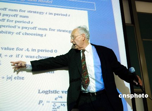 | 诺贝尔经济学奖获得者、德国波恩大学教授、欧洲经济学会主席、德国科学院院士,中国人民大学经济学院客座教授莱因哈德·泽尔滕2006年5月18日下午14时30分在中国人民大学讲座。莱因哈德·泽尔滕主要研究领域为:博弈论、实验经济学、有限理性和行为经济学。人物背景:泽尔滕教授于1994年,和美国人约翰·海萨尼,美国人约翰·纳什(Beautiful Mind的主角),因在“非合作博弈的均衡分析”理论方面作出了开创性的贡献,对博弈论和经济学产生了重大影响,而获得1994年诺贝尔经济学奖。作者:王利