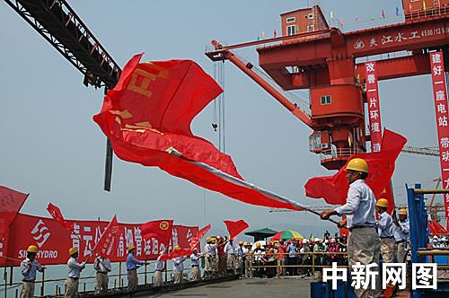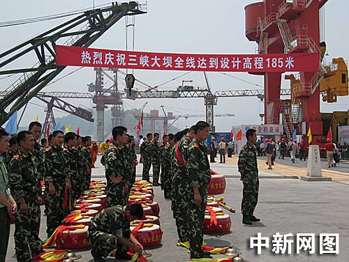 二十日下午十四时,中国国务院三峡建设委员会副主任、三峡总公司总经理李永安宣布:三峡大坝最后一仓混凝土浇筑完毕,举世瞩目的三峡大坝全线到达设计高程一百八十五米。这标志着世界上最大的水利枢纽工程中国长江三峡水利枢纽主体工程完工。作者:艾启平