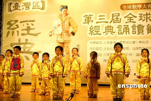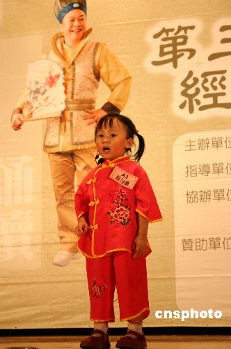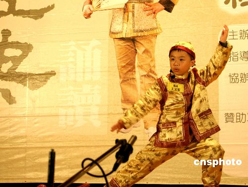 五月二十日,台湾区“第三届全球中华文化经典诵读观摩大赛”总决赛于台北车站演艺厅举行。参赛小童将摇滚饶舌、相声快书、国乐演奏、民族舞蹈等不同才艺表演元素结合进诵读之中,极富创意。中新社发 张量 摄