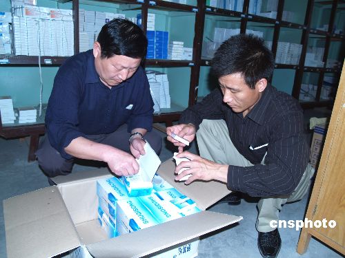2006年5月20日,山东无棣食品药品监督管理局执法人员清点查封一批“齐二”假药。当日,执法人员在辖区内一家医疗机构的药房进行检查时,发现齐齐哈尔第二制药有限公司生产的“倍他米松磷酸钠注射液”743支,执法人员当场将之查封、扣押。中新社发 陈子庆 摄