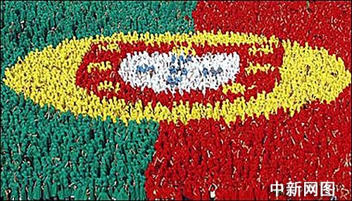 世界杯的疯狂:数千名妇女聚集在葡萄牙首都里斯本附近的郊区,组成了一个“人型”国旗,以表示对参加德国世界杯的葡萄牙国家足球队的支持。