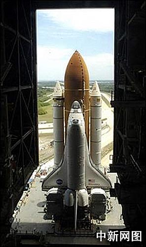 近日,美国“发现号”航天飞机从垂直装配间挪出,准备前往4.5英里远的肯尼迪航天中心39-B发射台。