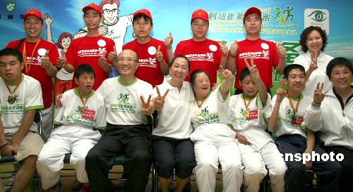 五月二十一日是全国助残日,刚参加完河北省特殊奥林匹克运动会的五名选手迎来了自己的偶像——奥运会冠军王军霞。能够和健全人同享运动的快乐,和王军霞引领“健康跑”、合影、抽奖,令特奥运动员兴奋异常。中新社发 张澍 摄