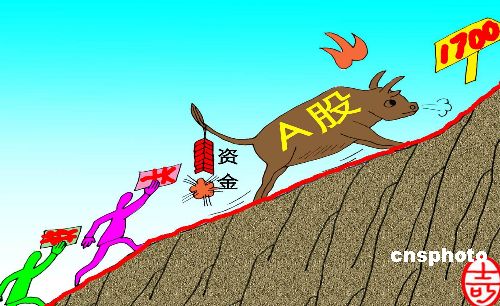 尽管股市在高位震荡加剧,但在大量草根资金(炒房资金及居民储蓄资金)的推动下,仍收出大阳。看来,只要人民币升值不止,这“疯牛”行情暂时还没有结束的迹象。中新社发 任士可 摄