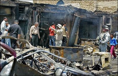 在布莱尔乘直升飞机到达巴格达安全“绿区”不久,一枚炸弹在巴格达市内的一个市场爆炸,3人死亡,至少12人受伤。近几天首都巴格达的安全形势很糟,周日(21日)19人死于系列炸弹爆炸事件。