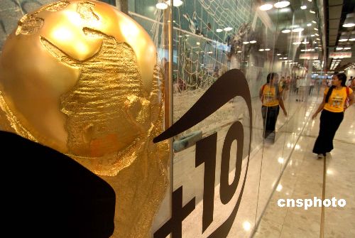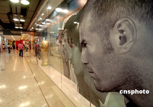 世界杯足球赛即将开锣,香港购物商场及食肆酒吧大张旗鼓迎接又一黄金档期,一家运动城将皇家马德里球星人像作广告招徕顾客。中新社发 洪少葵 摄