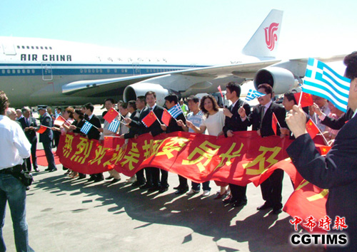 吴邦国委员长的其他陪同人员同机抵达。中国驻希腊大使田学军以及使馆工作人员、中资机构、留学生和华侨华人代表到机场迎接。