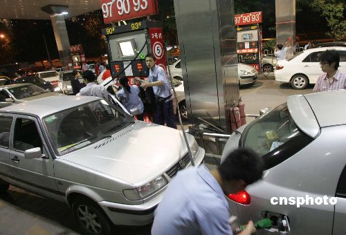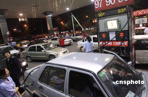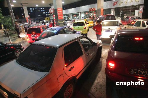 五月二十三日夜,北京盛传汽油涨价的消息,致各大加油站车满为患。中新社发 武仲林 摄
