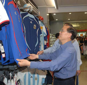 曾荫权随后前往区内一间商场,感受了一下新市镇居民闲时的生活和购物乐趣。与市民闲话家常,还购买了一件球衣,迎接世界杯赛事的来临。