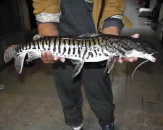 据台湾媒体报道,日月潭区渔会渔民魏阿靖,23日清晨在日月潭中捕获一条从未见过亦不知名的“鱼”,身长约3尺、重有4斤,形状相当奇特,除腹部是白色,全身均有斑马线纹,嘴成鸭嘴状,全身无鳞,嘴旁还有四根胡须,两根白色、两根黑色,多位渔民都未曾见过,因此吸引许多民众前往观赏,更有待专家正名。