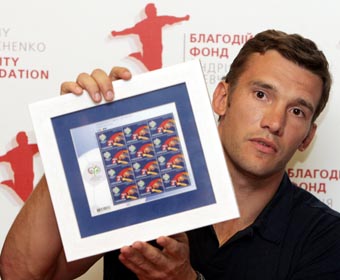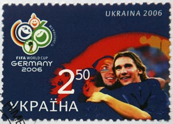 这张拍摄于5月23日的邮票显示的是一张印有乌克兰国家队球员舍甫琴科的邮票。乌克兰邮政局发行这张邮票的目的在于宣传即将到来的世界杯足球赛。