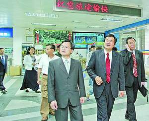 厦门市台办主任黄呈建迎接并陪同他们参观了改造后的和平码头入境厅、出境厅,向他们介绍了厦门为旅客快速、便捷通关采取的一系列措施,以及台湾航空公司在和平码头候客厅设点经营“海空联运业务”方便旅客的情况。