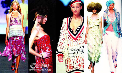 图5:特别的镂空编织内衣与轻薄的镂空针织外套搭配,令MichikoKoshino的模特倍显飘逸。