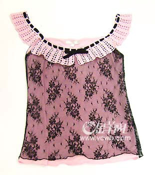 黑色蕾丝纱的加盟,让荷叶领的小背心少了一丝甜腻,多了一份大气。