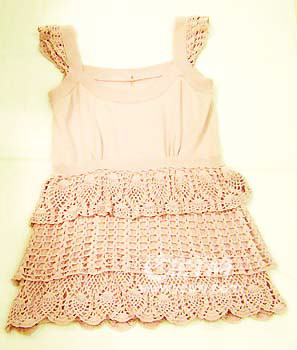 图1:AnnaSui以面料混搭的针织小背心配飘逸的花瓣裙,弥漫法国式的浪漫田园风。