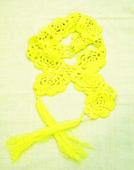 由花朵图案拼接而成的薄围巾,装饰效果很强,配裙装或裤装都不错。