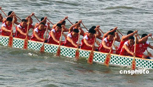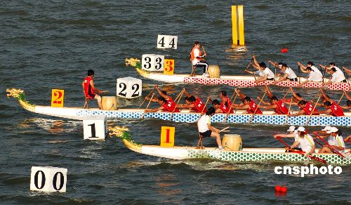 五月二十四日,在苏州举行的第三届全国体育大会龙舟竞赛中,广东队获女子组500米和男子组500米双冠军。中新社发 邱勇 摄
