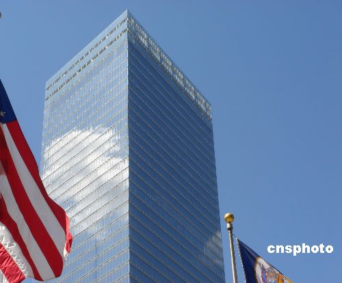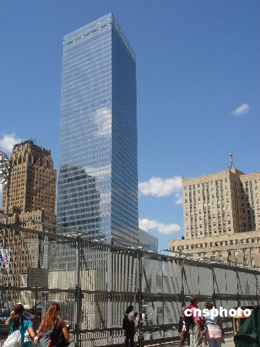 在纽约世贸中心旧址上重建的七号世贸中心(7 World Trade Center)二十三日落成并启用,这是九一一恐怖袭击摧毁的建筑中,第一座重建完成的大楼。这座重建的大楼高五十二层,比原来高出五层。中新社发 谭宏伟 摄