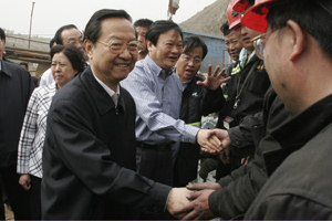 中新网5月25日电 据国家安监总局消息,5月24日,国家安全生产监督管理总局局长李毅中、国家煤矿安全监察局副局长彭建勋等领导同志,来到山西省左云县“5.18”事故矿井的主井、副井以及燕子山矿排水口,了解事故抢险进展情况,慰问一线救援人员,并就如何落实好温家宝总理、华建敏国务委员的指示精神,进一步做好抢险救援工作提出要求。