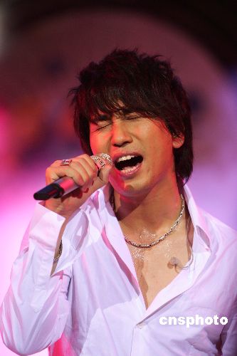 5月24日夜晚,青年歌手沙宝亮携带新音乐专辑《比多更多》,亮相太原电视台《明星全接触》。他那具有特别韵味的歌声,受到人们的喜爱。中新社发 张云 摄