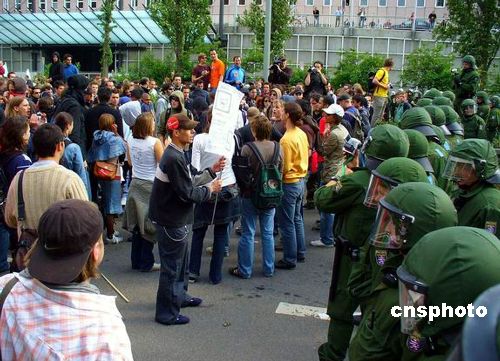 当地时间5月24日下午,继两周前以罢课抗议黑森州政府计划明年对该州大学生征收500-1500欧元一学期学费的规定之后,德国法兰克福大学上千学生在法兰克福城区游行示威,造成该市交通瘫痪,上百名防暴警察对游行示威进行有效控制。世界杯比赛即将来临,而学生们还游行示威,今年夏天够德国警察忙活的。中新社发 再见夕阳 摄