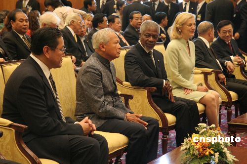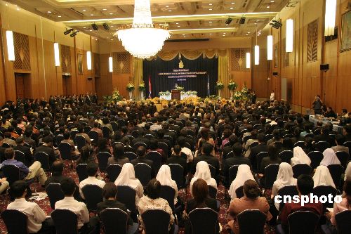 泰国政府五月二十六日举办一个题为“泰国国王与人类发展”的高层论坛,庆祝泰皇登基六十周年。联合国秘书长安南、泰国枢密院主席炳上将、泰国看守副总理素拉杰等莅会演讲,高度赞扬泰国普密蓬国王六十年来对国家的发展和人民的幸福所作的贡献。中新社发 罗钦文 摄