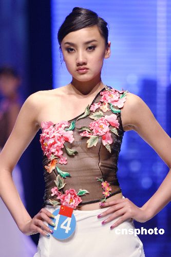 2006年5月26日晚,亚洲超级模特大赛第一场决赛彩排在广西电视台1000平米演播厅进行。模特们身着性感内衣,热辣的日装、诱人的晚装彩排。中新社发 骆文刚 摄