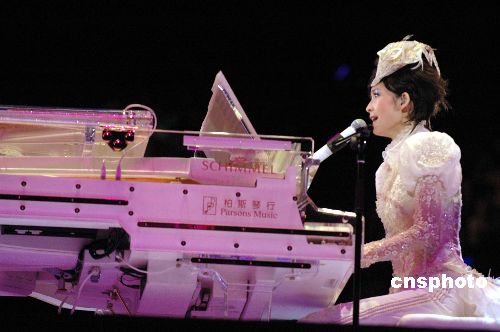 5月27日晚,香港“玉女掌门人”周慧敏在红馆演出最后一场《周慧敏Back For Love演唱会》,今次个唱是为“香港非牟利兽医诊所”筹款,阔别舞台十二年的周慧敏,穿上多套低胸吊带晚装上场,依然性感美丽、高贵大方。演唱会上众多“重量级”佳宾为她捧场。中新社发 蔡蔓莉 摄