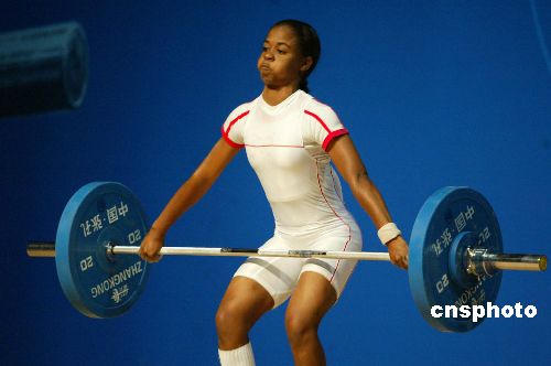 五月二十八日,第三十二届男子和第十二女子世界青年举重锦标赛,在杭州黄龙体育馆揭幕。共有五十多个国家和地区的两百名选手参加比赛。这是一九九五年广州世锦赛后,中国第二次举办世界级举重比赛。图为女子48kg比赛现场。中新社发 柴燕菲 摄