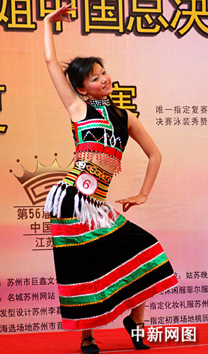 五月二十八日,第56届世界小姐中国总决赛江苏选拔赛在苏州举行,将在43名参赛选手中通过休闲装与自我介绍、泳装、才艺表演和晚装四个环节选出28名参加决赛。图为休闲装表演。中新社发 邱勇 摄