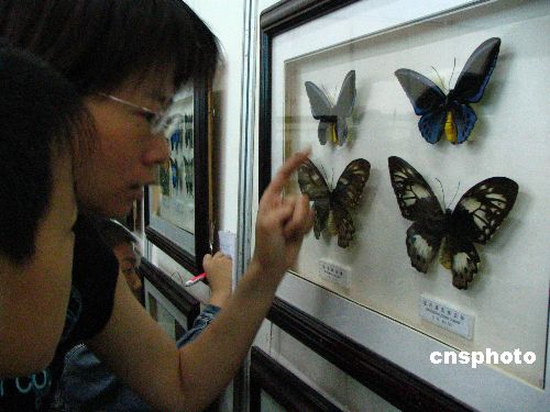 2006年5月28日,世界大型奇异蜘蛛科普展暨珍稀昆虫精品展在河南省科技馆展出。来自世界100多个国家和地区的近千个昆虫标本向市民开放,展区分为蜘蛛与昆虫综合知识区、活体捕鸟蜘蛛、蜘蛛标本区、昆虫和蜘蛛等展区。据悉,该展览展出了已载入“世界吉尼斯大全”的世界各国珍稀蜘蛛、昆虫、蝴蝶标本一千多种、数千只昆虫,并有十多种活体蜘蛛。中新社发 陈代述 摄