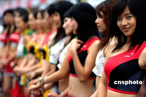 5月28日,全国汽车场地锦标赛珠海第3站的比赛精彩落幕,赛道佳丽们比参赛选手更受摄影师的关注。中新社发 双人鱼 摄