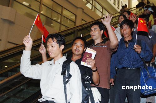 五月二十九日晚九时三十分,243名在东帝汶骚乱中受困的华侨华人分乘两架中国政府包机安全抵达福建厦门。中新社发 郑祚声 摄