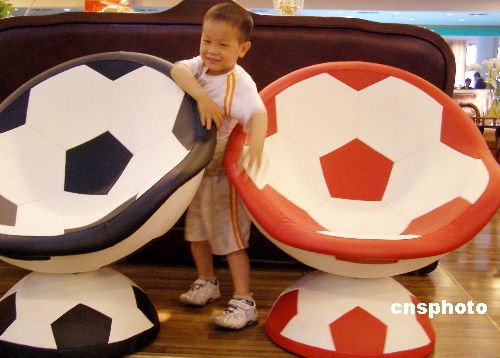 22006年德国足球世界杯开赛在即,5月底,江苏苏州许多商家推出足球类产品,一家家具城推出足球沙发,吸引了很多球迷前来购买。中新社发 王润界 摄