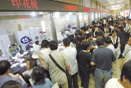 相关人士介绍,从5月26日起,各区房地产交易中心办理过户的人越来越多。抛盘者不惜让利,争取早日出手的气氛笼罩上海楼市。