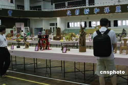 台湾著名小镇鹿港5月31日举办“鲁班公宴”,展示当地能工巧匠的精湛木雕工艺。中新社发 黄少华 摄