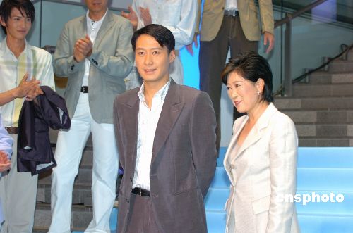 香港明星黎明五月三十一日晚在东京作为特邀嘉宾参加二00六“清凉亚洲”公务夏装演出。倡导穿着清凉夏装的日本环境大臣小池百合子与黎明一同亮相。中新社发 王健 摄