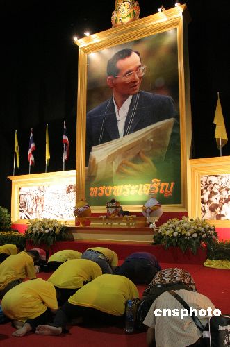 在六月九日泰皇登基六十周年纪念日即将到来之前,泰国举办盛大展览以示庆祝,吸引全国民众前往参观。该展图文并茂、以实物布景等展示泰皇的生平、婚姻和家庭、皇家计划、王室活动等内容,九天来已吸引数百万观展者。中新社发 罗钦文 摄