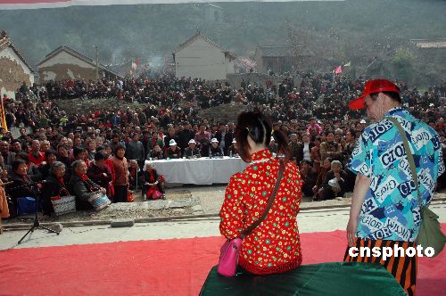 6月2日,国务院公布了第一批国家级非物质文化名录,河南省沁阳市地方剧种——怀梆榜上有名。河南省沁阳市地方剧种“怀梆”是中原地区较古老的地方剧种,俗称老怀梆、小梆(班)戏、怀调,在唱腔和表演艺术上有自己的独特风格。该剧种具古怀庆府(今沁阳市)本地及山西中路梆子特色,流行区域以古怀庆府为中心,辐射河南、河北、山西、陕西部分地区。怀梆唱腔慷慨激昂,表演粗犷奔放,上演的剧目多为双生、双旦、双花脸。由于怀梆属板腔体,演唱时须用枣木梆击打节奏、唱词多为七字句。怀梆有300多本传统戏,另有近百部现代时装剧。其代表剧有:《反西京》、《古槐案》、《张春醉酒》、《老少换》、《红珠女》。 中新社发 杨帆 摄