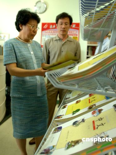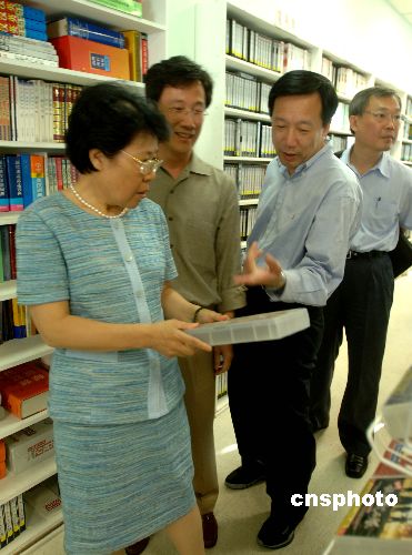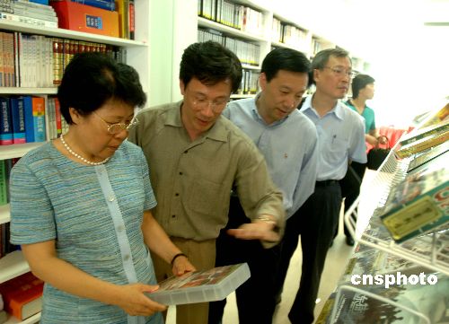 六月初访美的国侨办主任陈玉杰率文宣司司长刘辉和国外司司长熊昌良等,在洛杉矶《侨报》总裁谢一宁陪同下,考察此地开办的中国文化发展中心。中新社发 贾国荣 摄