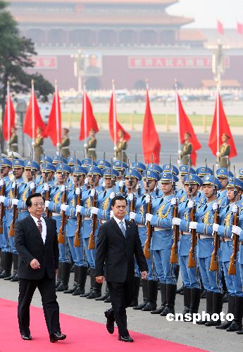 六月五日,中国国家副主席曾庆红在北京人民大会堂东门外广场主持仪式,欢迎来访的菲律宾副总统诺利·德卡斯特罗。中新社发 廖文静 摄