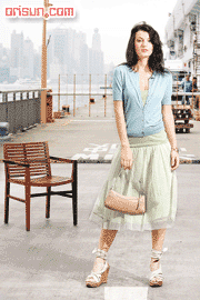 要知今季糖果色彩潮有多热,只要看一看众时装名牌,包括DKNY、LouisVuitton及BottegaVeneta等,都以糖果色调示众便知,当中以桃红、粉黄、天蓝及草绿最受追捧。在配搭上,有别早几季左搭右搭的多色配搭,今季色彩设计来得简洁优雅,大部分名牌均推崇单色或同色系配衬方法。说款式,以简约剪裁的连身裙款为主,如LouisVuitton有80年代色彩的性感桃红迷你裙、BottegaVeneta有民族绣花连身裙,而以芭蕾舞为主题的Blugirl,便派有薄纱蓝色连身裙上阵。(朱宝茵)